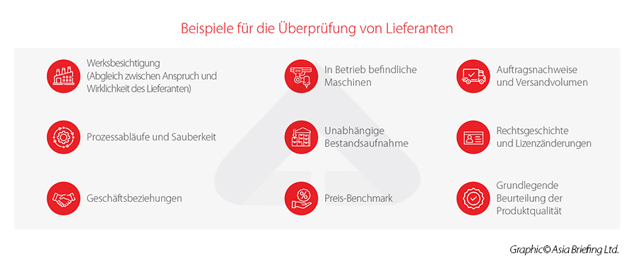 Traditionell führen größere Kunden regelmäßig Qualitäts- und Finanzaudits bei ihren Lieferanten durch. Dies gilt jedoch nicht für viele KMU, die in China Lieferanten für Fertigwaren oder standardisierte Halbfertigprodukte haben.